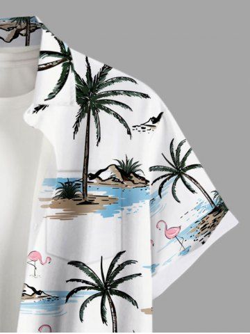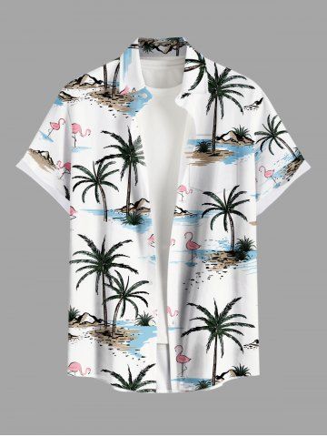 Chemise hawaïenne grande taille à imprimé flamant rose et cocotier pour homme - Blanc - Blanc