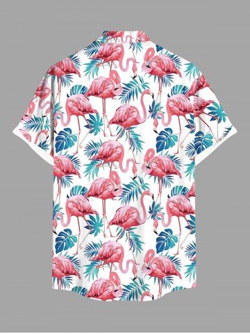 Chemise hawaïenne grande taille à imprimé flamant rose et feuilles tropicales, avec poches et boutons, pour homme - Blanc - Blanc