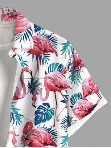 Chemise à Manches Courts> Chemise hawaïenne grande taille à imprimé flamant rose et feuilles tropicales, avec poches et boutons, pour homme