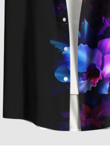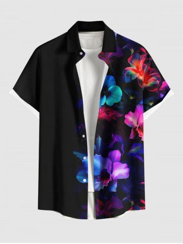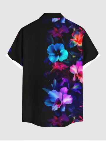 Chemise hawaïenne grande taille à imprimé fleurs d'hibiscus et poches boutonnées pour homme - Noir - Noir