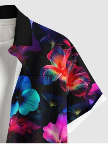 Chemise à Manches Courts> Chemise hawaïenne grande taille à imprimé fleurs d'hibiscus et poches boutonnées pour homme