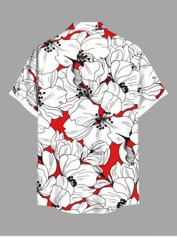 Chemise à Manches Courts> Chemise hawaïenne grande taille à imprimé fleurs d'hibiscus et poches boutonnées pour homme