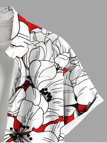 Chemise hawaïenne grande taille à imprimé fleurs d'hibiscus et poches boutonnées pour homme - Blanc - Blanc