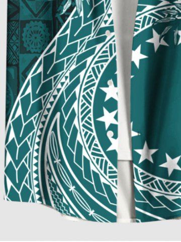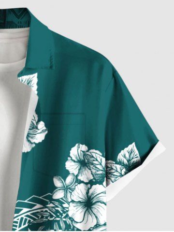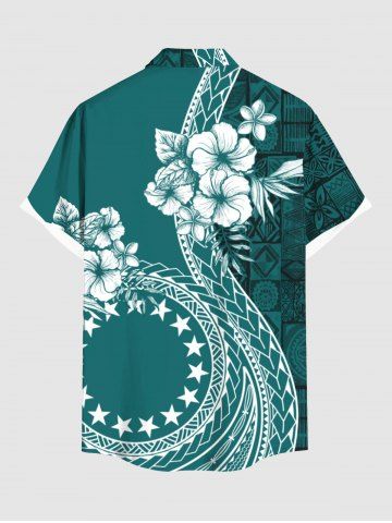 Chemise hawaïenne grande taille à imprimé fleurs d'hibiscus, étoiles, foulard, boutons, poche, pour homme - Vert - Vert