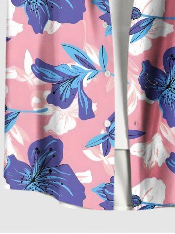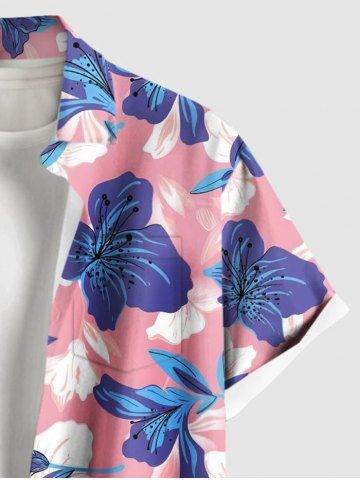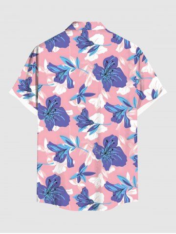 Chemise hawaïenne grande taille à imprimé fleurs d'hibiscus tropical et poches à boutons pour homme - Rose Clair - Rose Léger
