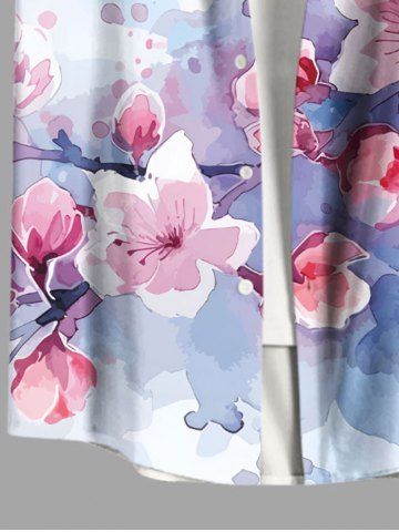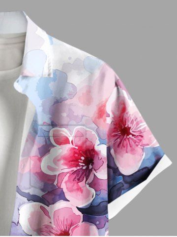 Chemise à Manches Courts> Chemise hawaïenne grande taille à imprimé fleurs de pêcher aquarelle et boutons avec poches pour homme