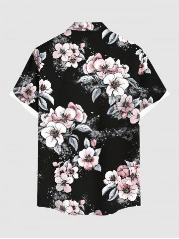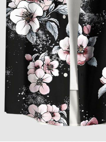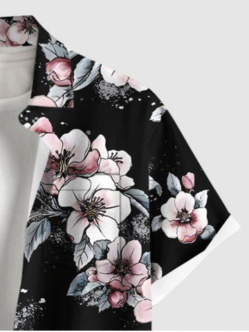 Chemise hawaïenne grande taille à imprimé fleurs et feuilles, avec poches boutonnées, pour homme - Noir - Noir