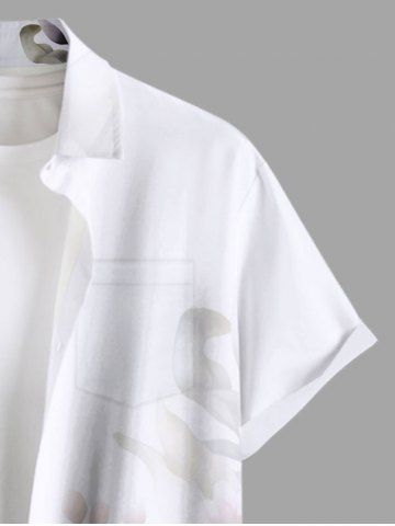 Chemise hawaïenne grande taille à imprimé fleurs et feuilles, avec poches et boutons, pour homme - Blanc - Blanc