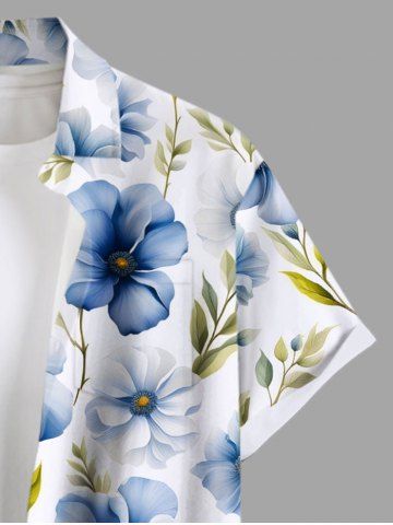 Chemise hawaïenne grande taille à imprimé fleurs et feuilles, avec poches et boutons, pour homme - Bleu - Bleu