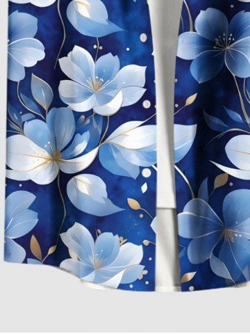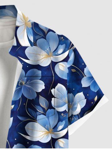Chemise hawaïenne grande taille à imprimé fleurs et feuilles, avec poches et boutons, pour homme - Bleu - Bleu