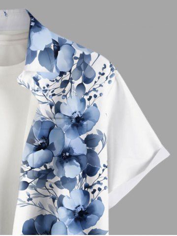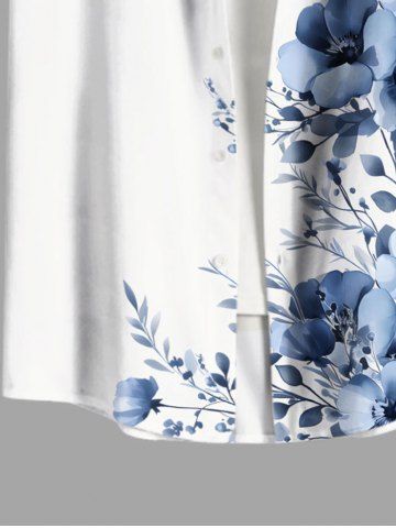 Chemise hawaïenne grande taille à imprimé fleurs et feuilles, avec poches et boutons, pour homme - Blanc - Blanc