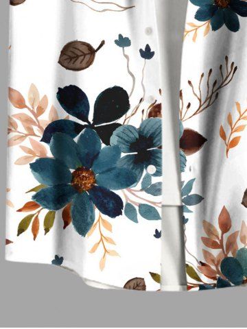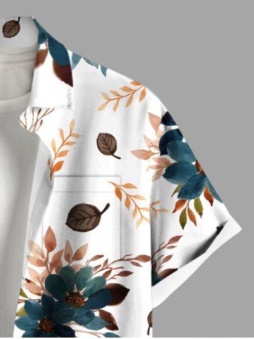 Chemise à Manches Courts > Chemise hawaïenne grande taille à imprimé fleurs et feuilles, avec poches et boutons, pour homme