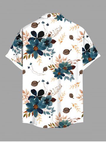 Chemise hawaïenne grande taille à imprimé fleurs et feuilles, avec poches et boutons, pour homme - Blanc - Blanc