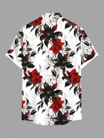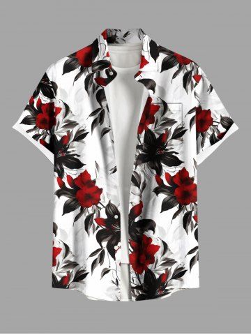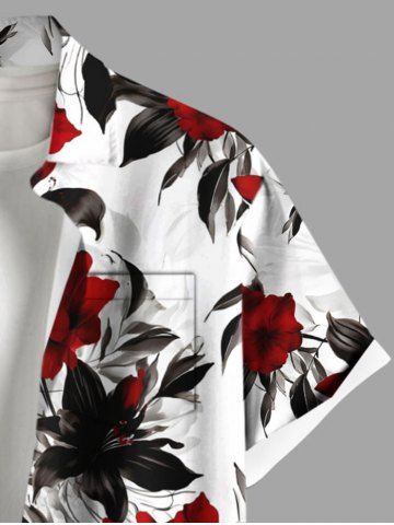 Chemise hawaïenne grande taille à imprimé fleurs et feuilles, avec poches et boutons, pour homme - Blanc - Blanc
