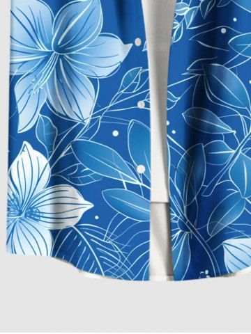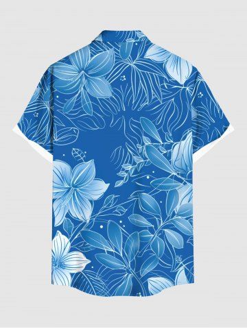 Chemise hawaïenne grande taille à imprimé fleurs et feuilles, avec poches et boutons, pour homme - Bleu Ciel - Bleu Ciel