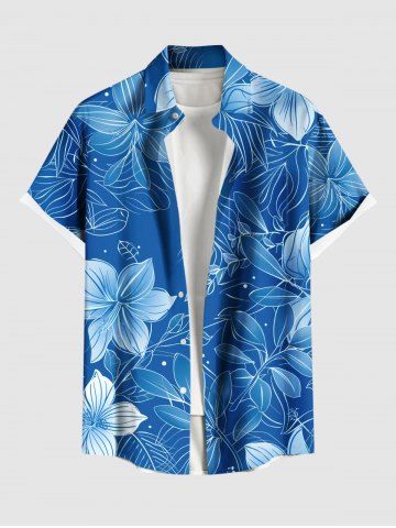 Chemise à Manches Courts> Chemise hawaïenne grande taille à imprimé fleurs et feuilles, avec poches et boutons, pour homme