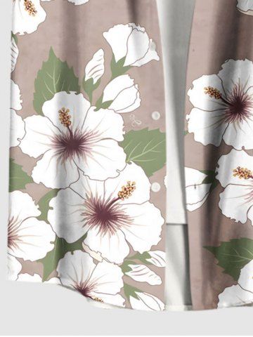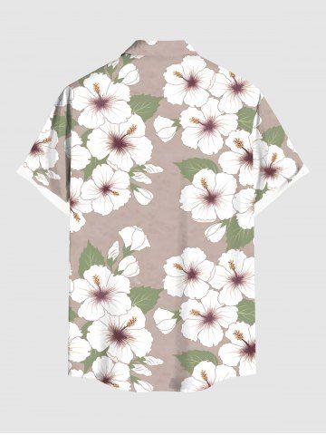 Chemise à Manches Courts> Chemise hawaïenne grande taille à imprimé fleurs et feuilles, avec poches et boutons, pour homme