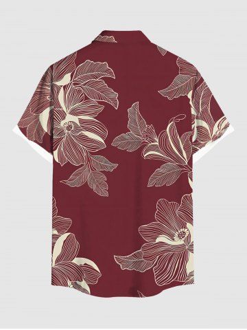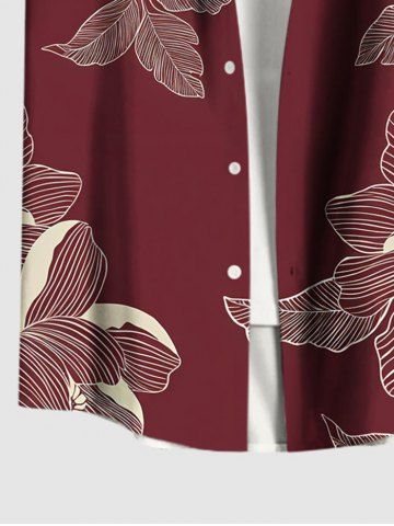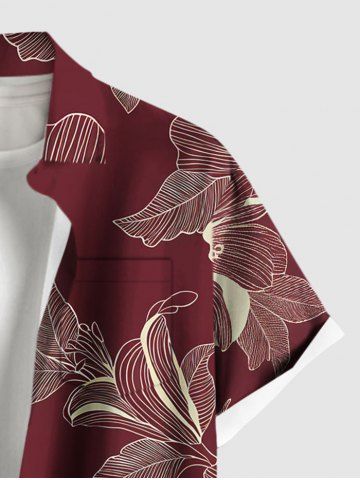 Chemise hawaïenne grande taille à imprimé fleurs et feuilles, avec poches et boutons, pour homme - Rouge Vineux - Xl