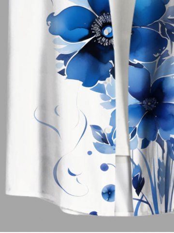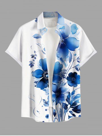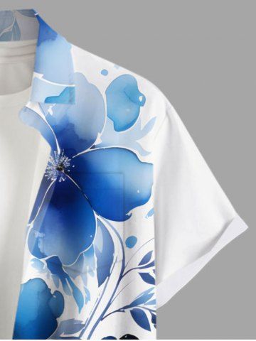 Chemise hawaïenne grande taille à imprimé floral aquarelle et poches boutonnées pour homme - Bleu Ciel - Bleu Ciel
