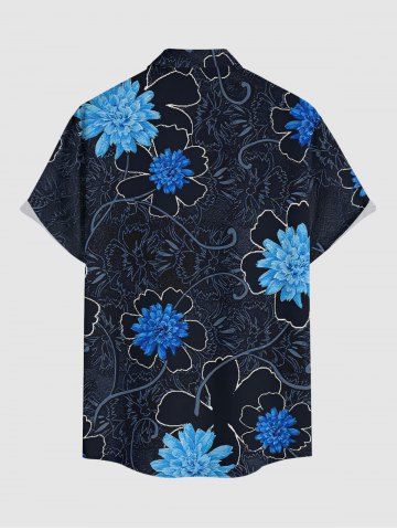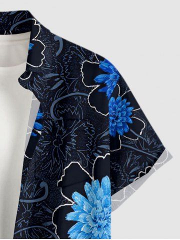 Chemise hawaïenne grande taille à imprimé floral, boutons et poches pour homme - Noir - Noir