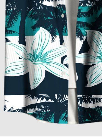 Chemise hawaïenne grande taille à imprimé floral de cocotier et boutons avec poches pour homme - Vert Profond - S