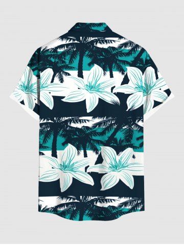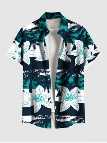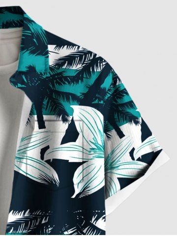 Chemise à Manches Courts > Chemise hawaïenne grande taille à imprimé floral de cocotier et boutons avec poches pour homme