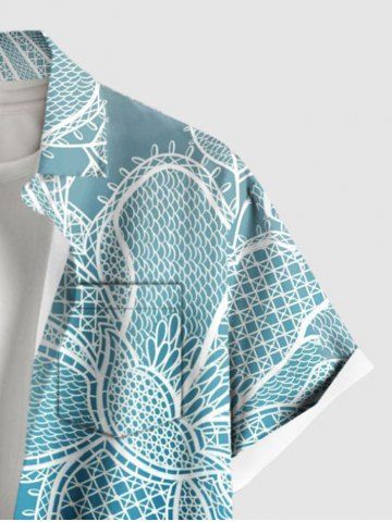 Chemise hawaïenne grande taille à imprimé floral Dip Dye Ombré et poches boutonnées pour homme - Bleu Ciel - Bleu Ciel