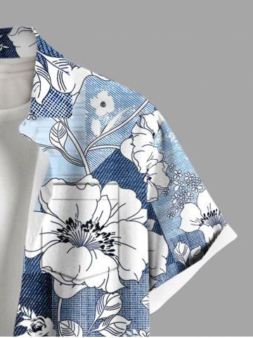Chemise hawaïenne grande taille à imprimé floral et blocs de couleurs pour homme - Bleu Poudre - 4xl