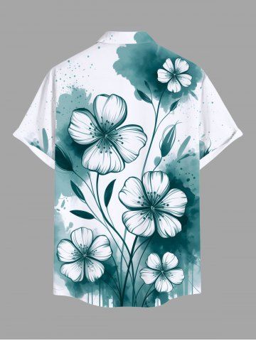 Chemise hawaïenne grande taille à imprimé floral et éclaboussures de peinture à l'encre pour homme - Vert - Vert