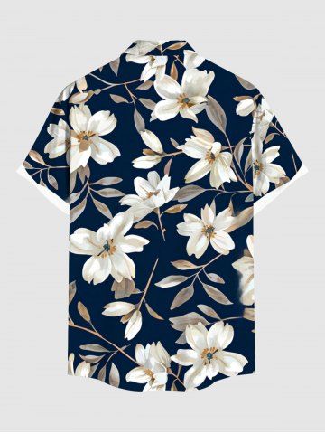 Chemise hawaïenne grande taille à imprimé floral et feuilles, boutons et poche pour homme - Bleu Marine - Bleu Marin