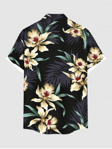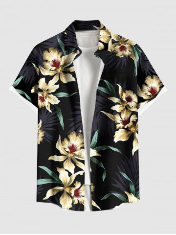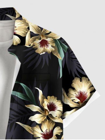 Chemise hawaïenne grande taille à imprimé floral et feuilles, boutons et poche pour homme - Noir - Noir