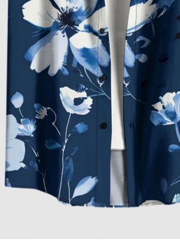 Chemise hawaïenne grande taille à imprimé floral et feuilles, boutons et poche pour homme - Cadetblue - 2xl