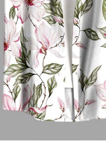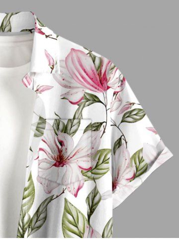Chemise à Manches Courts> Chemise hawaïenne grande taille à imprimé floral et feuilles, boutons et poche pour homme