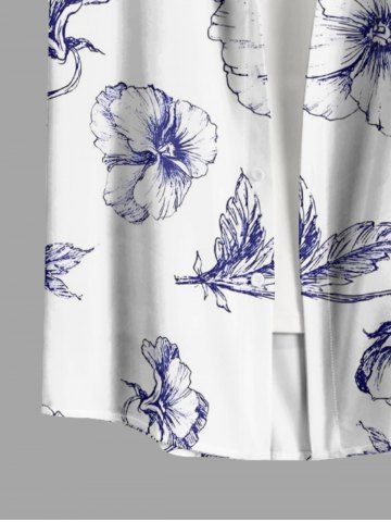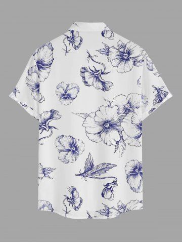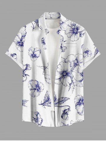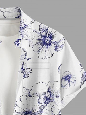Chemise hawaïenne grande taille à imprimé floral et feuilles, boutons et poche pour homme - Blanc - Blanc