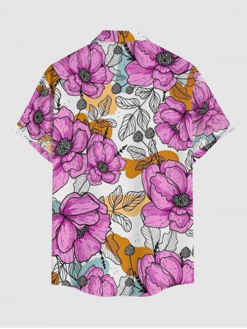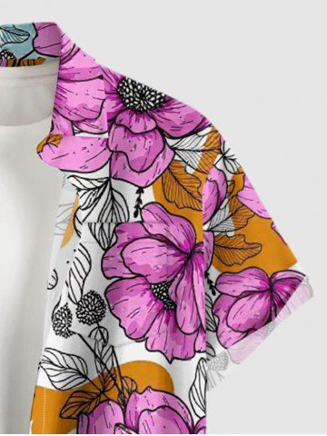 Chemise hawaïenne grande taille à imprimé floral et feuilles, boutons et poche pour homme - Rose Vif - 3xl