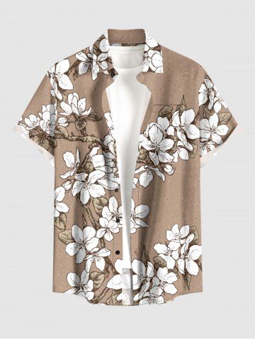 Chemise hawaïenne grande taille à imprimé floral et feuilles, boutons et poche pour homme - Bronze - 6xl