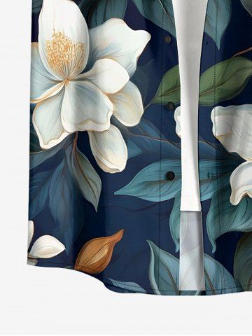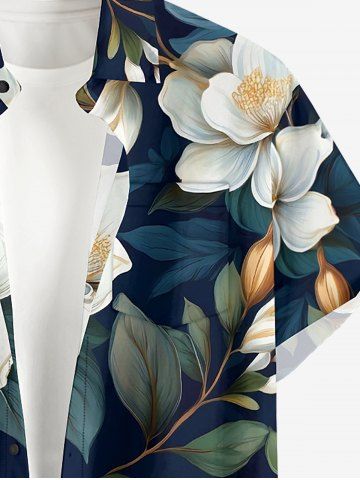 Chemise hawaïenne grande taille à imprimé floral et feuilles, boutons et poche pour homme - Bleu De Minuit - 2xl