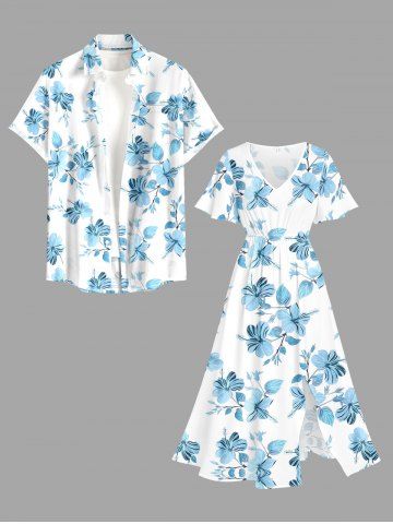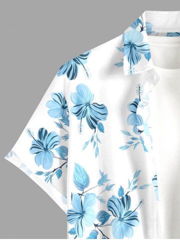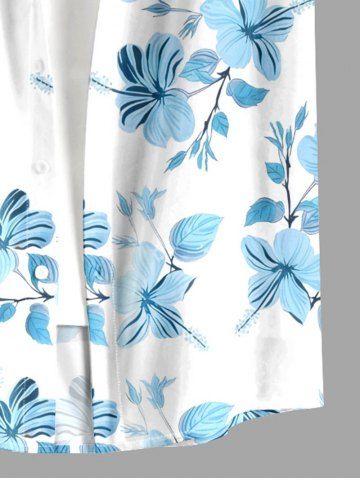 Chemise hawaïenne grande taille à imprimé floral et feuilles, boutons et poche pour homme - Bleu Clair - Bleu Clair
