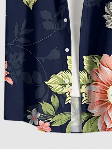Chemise hawaïenne grande taille à imprimé floral et feuilles, boutons et poche pour homme - Bleu Profond - 6xl