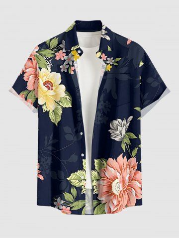 Chemise à Manches Courts > Chemise hawaïenne grande taille à imprimé floral et feuilles, boutons et poche pour homme