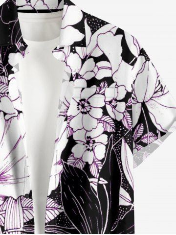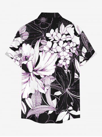 Chemise hawaïenne grande taille à imprimé floral et feuilles, boutons et poche pour homme - Noir - Noir