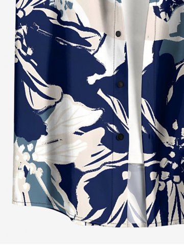 Chemise hawaïenne grande taille à imprimé floral et feuilles, boutons et poche pour homme - Bleu Profond - Xl