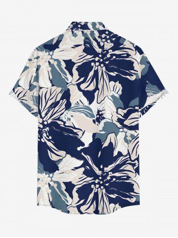 Chemise hawaïenne grande taille à imprimé floral et feuilles, boutons et poche pour homme - Bleu Profond - 3xl
