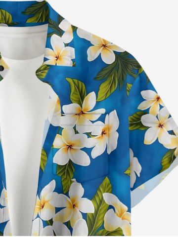 Chemise à Manches Courts> Chemise hawaïenne grande taille à imprimé floral et feuilles, boutons et poches pour homme