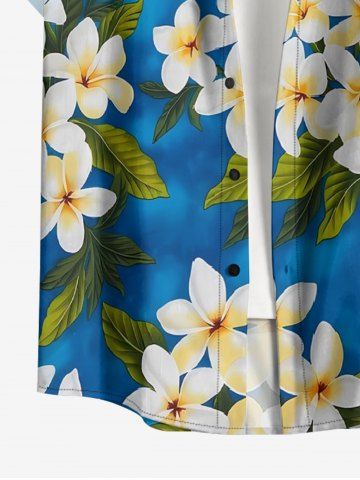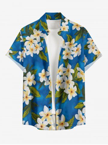 Chemise à Manches Courts> Chemise hawaïenne grande taille à imprimé floral et feuilles, boutons et poches pour homme