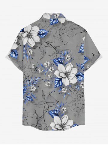 Chemise hawaïenne grande taille à imprimé floral et feuilles, boutons et poches pour homme - Gris - Gris