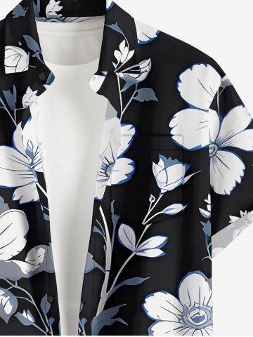 Chemise hawaïenne grande taille à imprimé floral et feuilles, boutons et poches pour homme - Noir - Noir