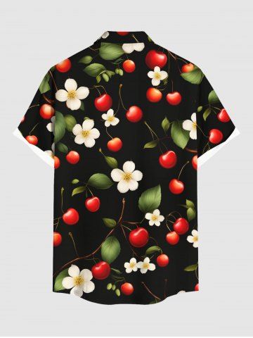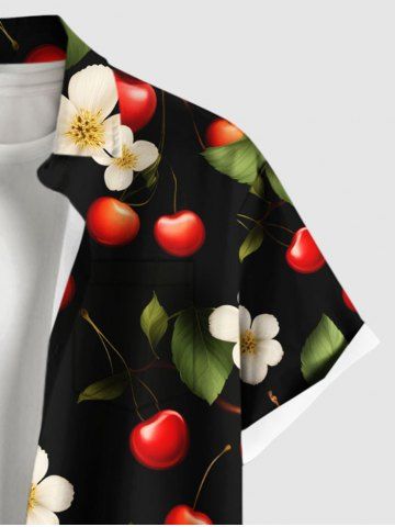 Chemise hawaïenne grande taille à imprimé fleurs et feuilles de cerisier pour homme - Noir - Noir