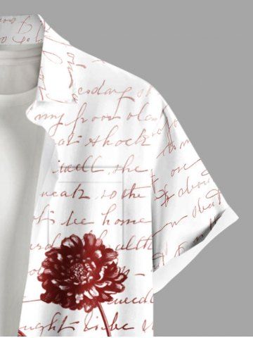 Chemise hawaïenne grande taille à imprimé floral et feuilles ombré avec poches boutonnées pour homme - Blanc - Blanc