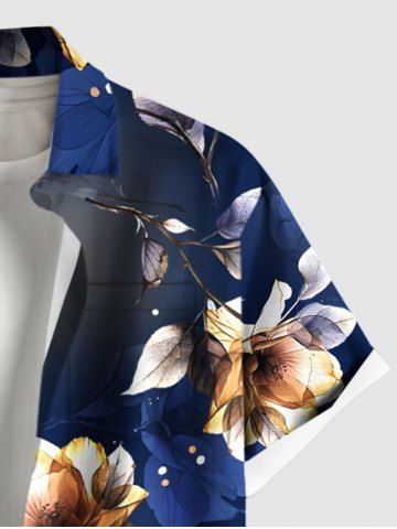Chemise hawaïenne grande taille à imprimé floral et feuilles ombré avec poches boutonnées pour homme - Bleu Marine - Bleu Marin
